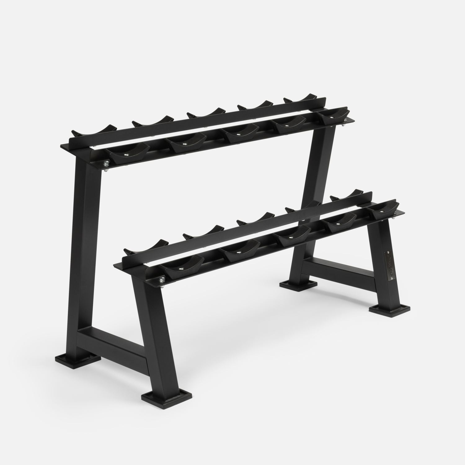 Dit hoogwaardige rek is geschikt voor verschillende soorten dumbbells en helpt je fitnessruimte professioneel en overzichtelijk te houden.
