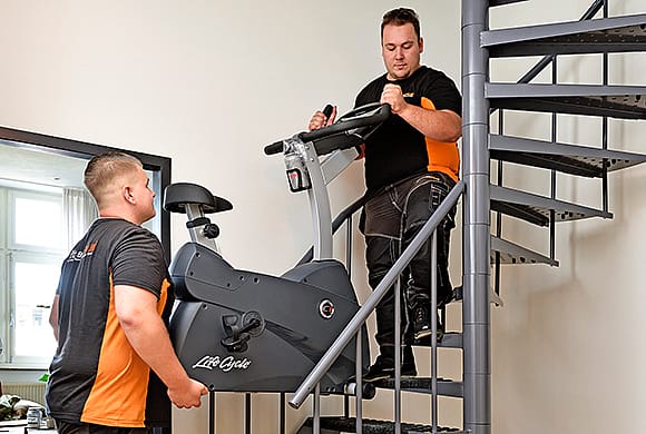 Onze gespecialiseerde monteurs hebben ruim 20 jaar ervaring en voeren dagelijks installaties op locatie uit. Daarbij maken onze monteurs op locatie ook nog altijd een extra inschatting om te kijken of je fitnesstoestel door het trapgat kan zodat ze alles netjes kunnen afleveren.
