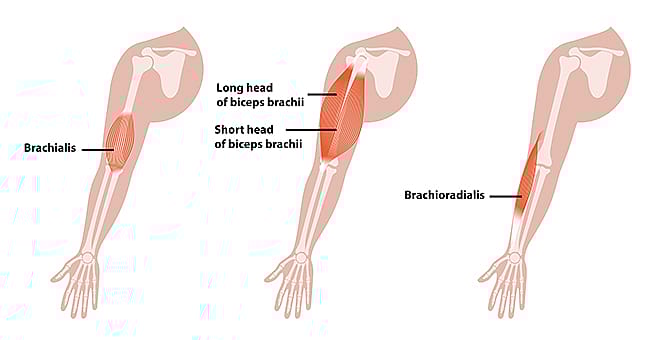 Doelgebied: Brachialis en brachioradialis, naast de biceps.