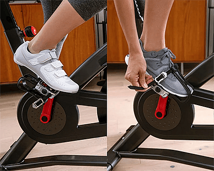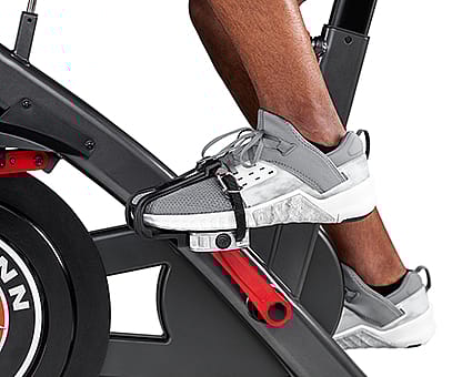 De dual SPD-pedalen zijn een échte meerwaarde van de 800IC. Deze pedalen bieden je namelijk twee opties: Je kan ze gebruiken met je gewone sportschoenen dankzij de teenkooien, of als je met speciale wielrenschoenen wilt fietsen kan je gebruik maken van de aanwezige SPD-pedalen. Deze laatste zorgen ervoor dat je een cirkelvormige trapbeweging maakt met een efficiëntere krachtoverdracht, wat resulteert in minder energieverlies en verbeterde prestaties.
