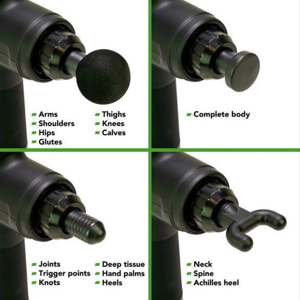 - 4 kopstukken voor massage van verschillende lichaamsdelen en spiergroepen