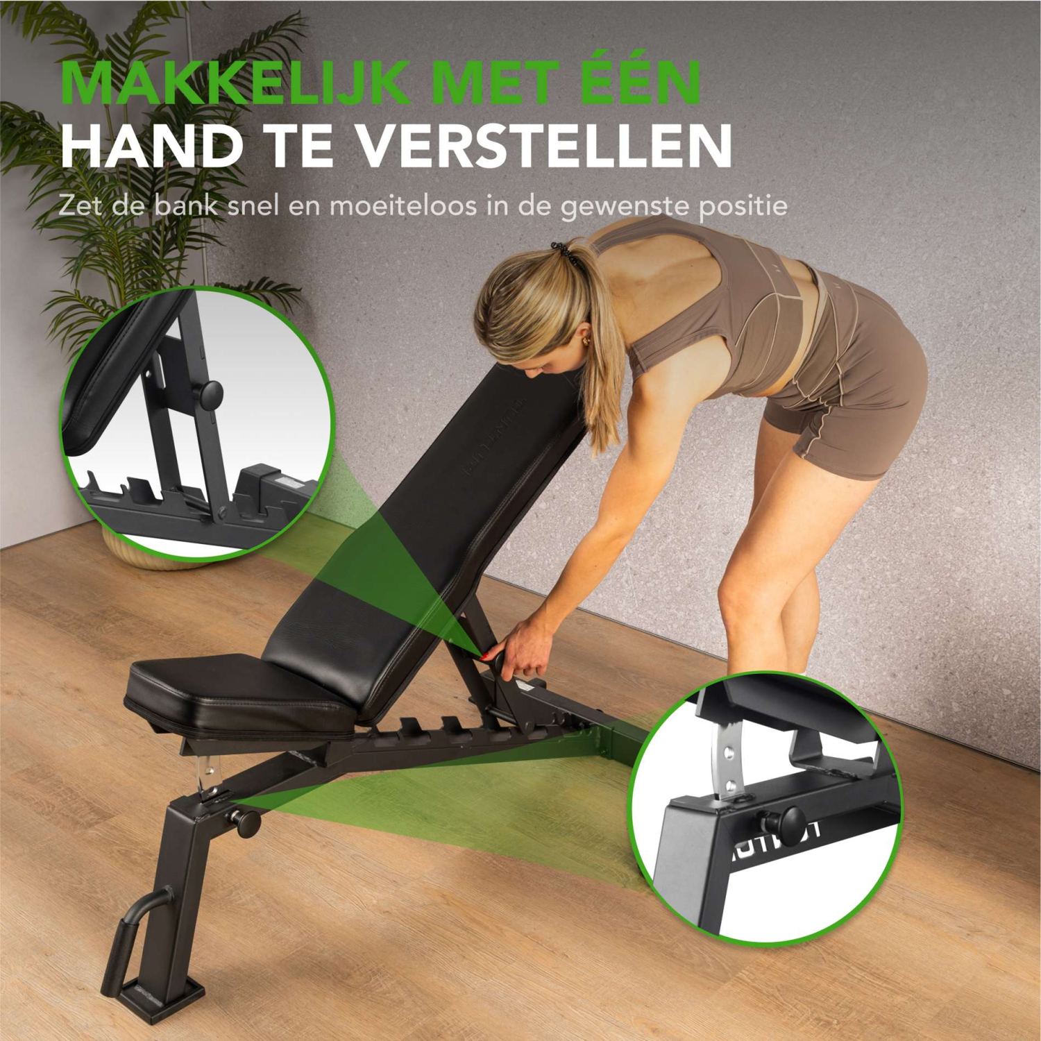 Met de verstelbare rugleuning en zitting stel je moeiteloos de ideale trainingspositie in, van decline tot incline.