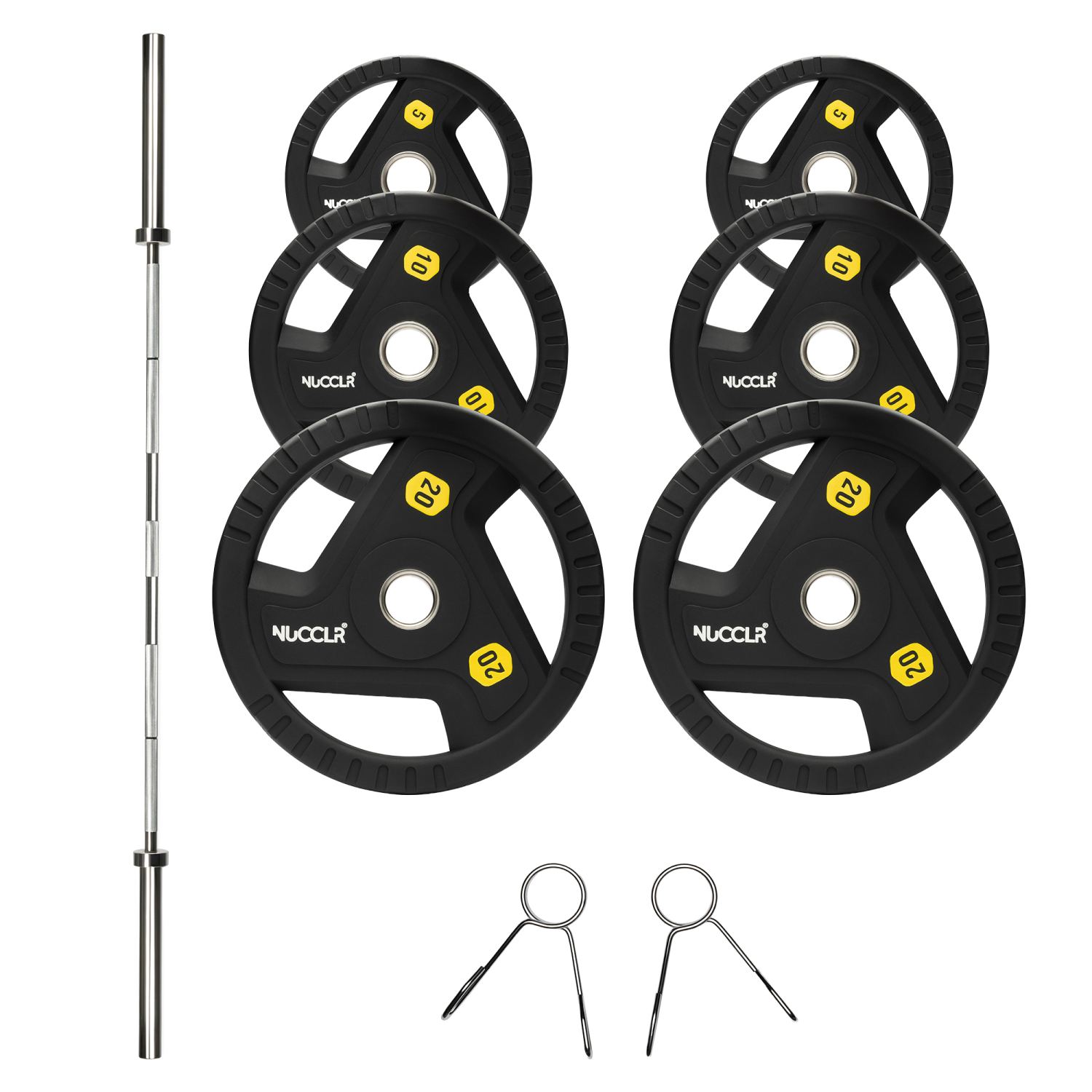 Home | Krachtapparatuur > Halterschijven > NUCCLR olympic halterset PU 90 KG