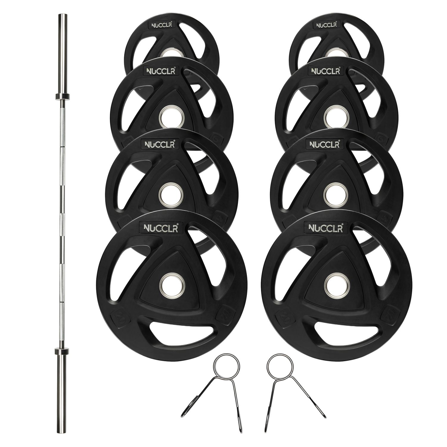 Home | Krachtapparatuur > Halterschijven > NUCCLR olympic halterset rubber 120 KG