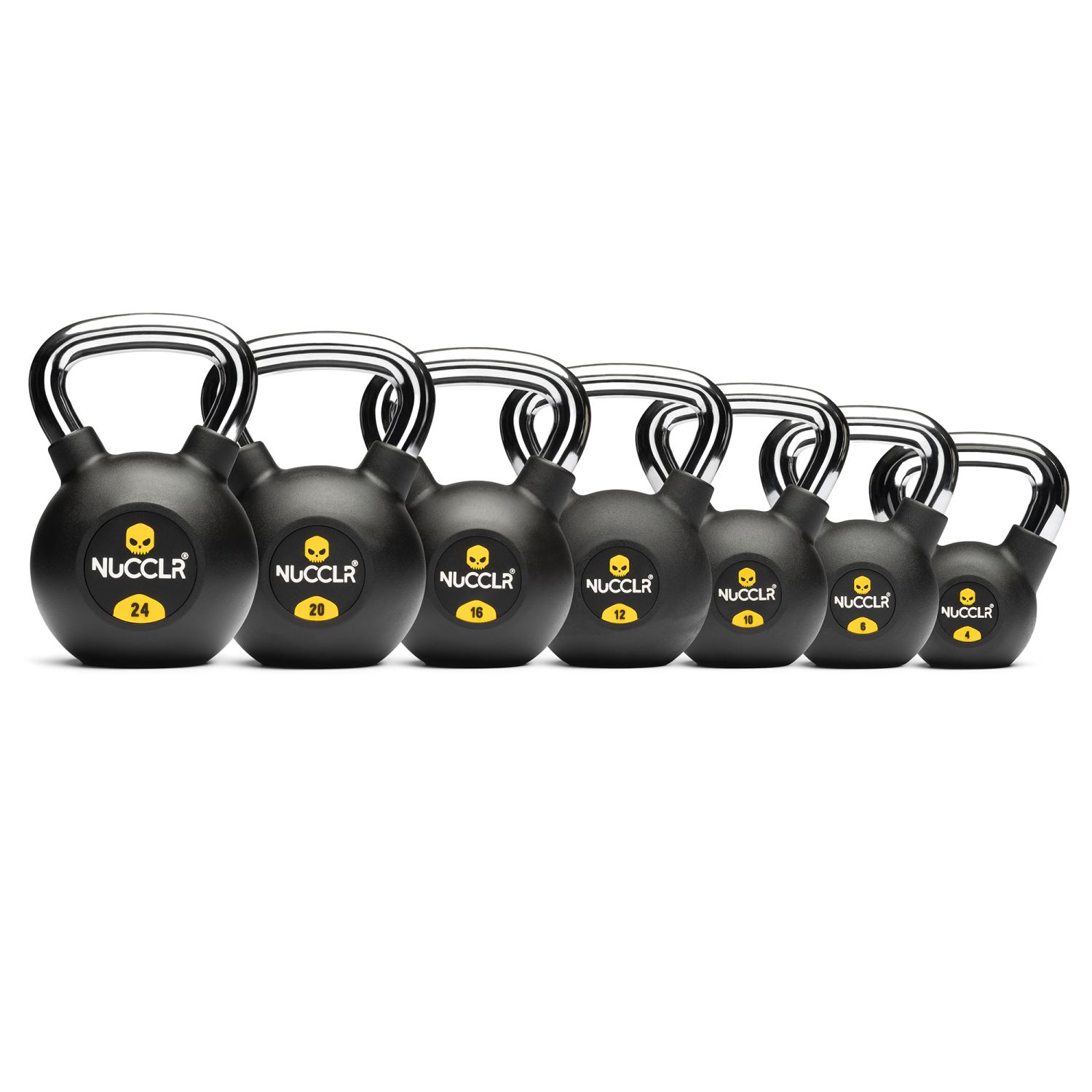 Home | Krachtapparatuur > Kettlebells > NUCCLR PU kettlebell set 4-24 KG