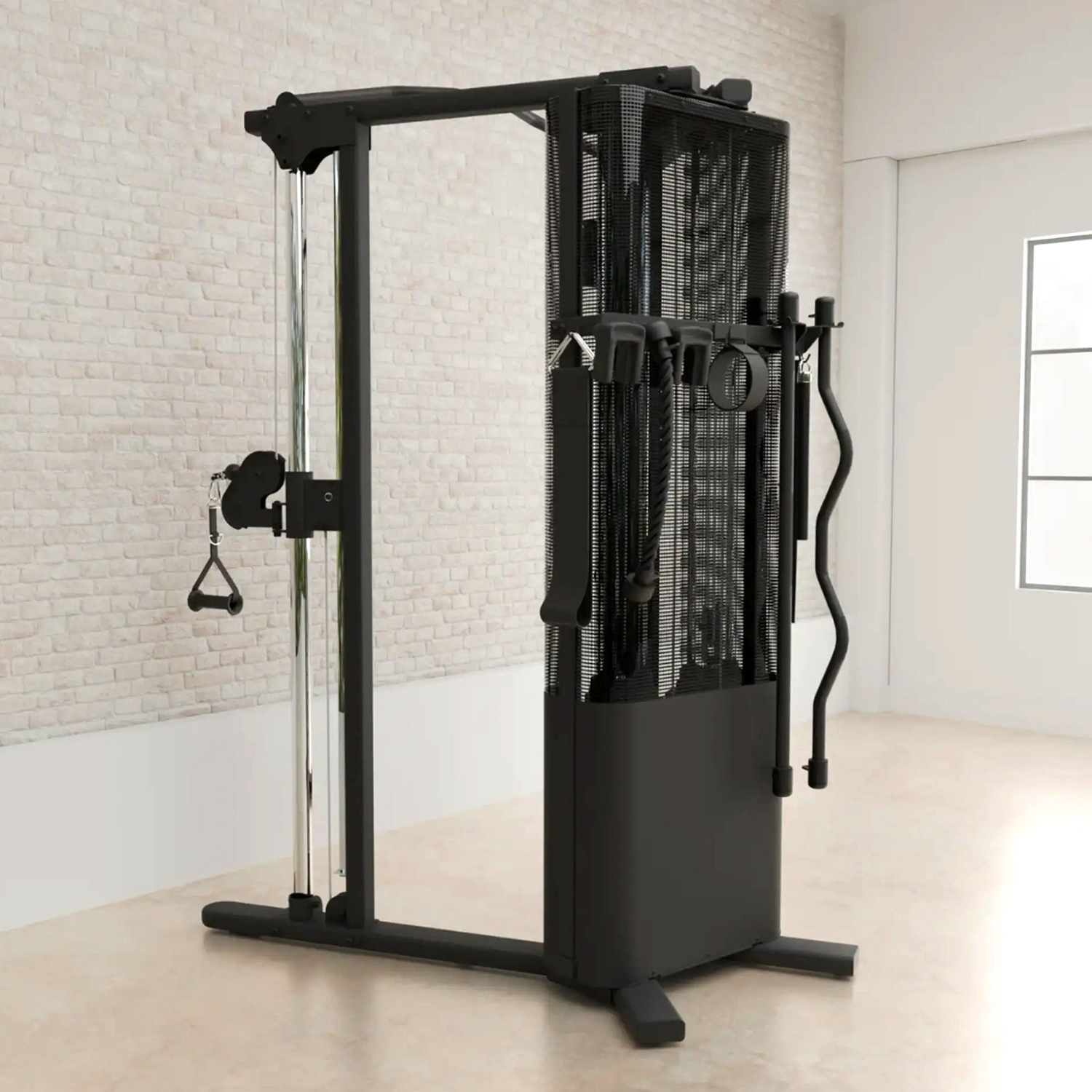 Met de Inspire FT1 PRO Package haal je een volwaardige fitnessruimte in huis, geschikt voor zowel veeleisende thuissporters als light-commercial gebruik. De kern van deze set is de FT1 PRO Functional Trainer, een 2-stack kabelmachine met 30 verstelbare swivel pulleys, een geïntegreerde optrekstang en een ultra-soepel pulley-systeem. Dankzij het slimme V-vormige frame past de trainer perfect in een hoek, terwijl je toch onbeperkte oefenmogelijkheden behoudt.