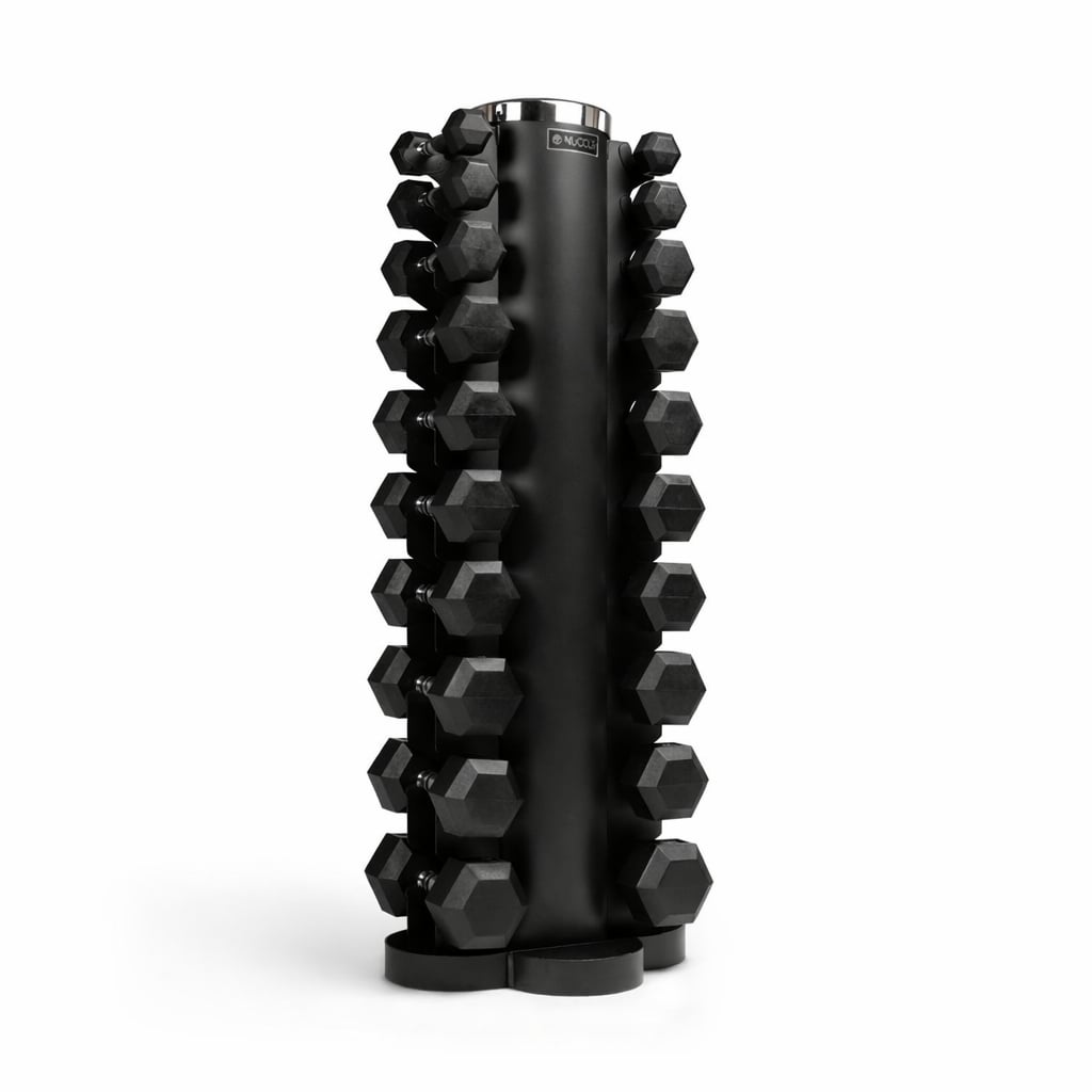 De NUCCLR dumbbell tower 10 sets is een compacte en stijlvolle oplossing voor het overzichtelijk opbergen van dumbbells, ideaal voor thuisgyms of kleine fitnessstudio’s.