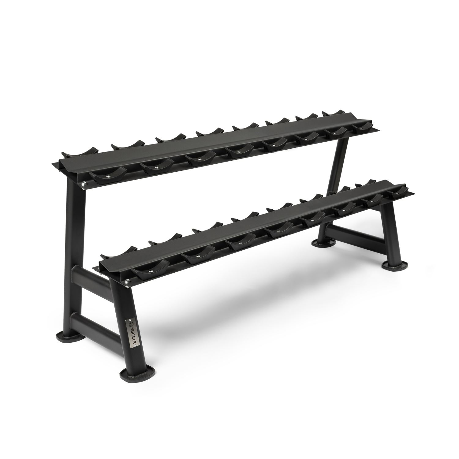 Het LifeMaxx Dumbbellrek voor 10 paar dumbbells (LMX 1012.10) is verkrijgbaar in bijna elke afmeting zodat de dumbbellsets netjes opgeborgen kunnen worden. Dit stijvolle, mat zwarte rek is zeer gemakkelijk uit te breiden met stappen van 5 of 6 sets.