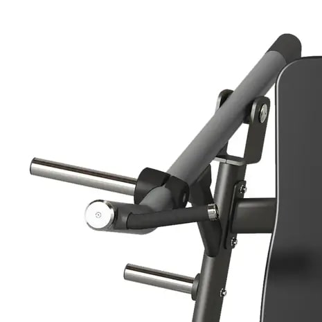 De robuuste constructie bestaat uit ovale en platte stalen buizen, afgewerkt met een dubbele krasbestendige poedercoating, die de machine beschermt tegen slijtage en corrosie. Ondanks de sterke bouw blijft het toestel compact met afmetingen van 1315x1480x1435 mm, waardoor het efficiënt past in elke professionele trainingsruimte.