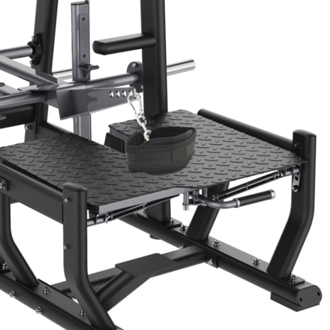De platformhoek is verstelbaar in 4 posities, zodat je verschillende spiergroepen op diverse manieren kunt belasten. Daarnaast kunnen de belt-haken in 3 posities worden ingesteld om de krachtoverdracht te variëren en de oefening aan te passen aan jouw lichaamsbouw en trainingsstijl.