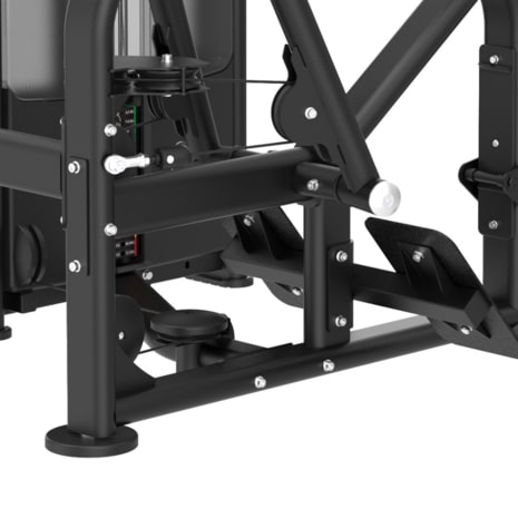 De gewichtsstapel van 100 kg, volledig afgeschermd met een Full Protection Cage, garandeert maximale veiligheid, ook in drukbezochte fitnessruimtes. Het toestel is gebouwd op een heavy-duty ovaal stalen frame (50x100 mm), gecombineerd met rond staal van ø60 mm en een wanddikte van 3 mm, wat zorgt voor ultieme stabiliteit en duurzaamheid.