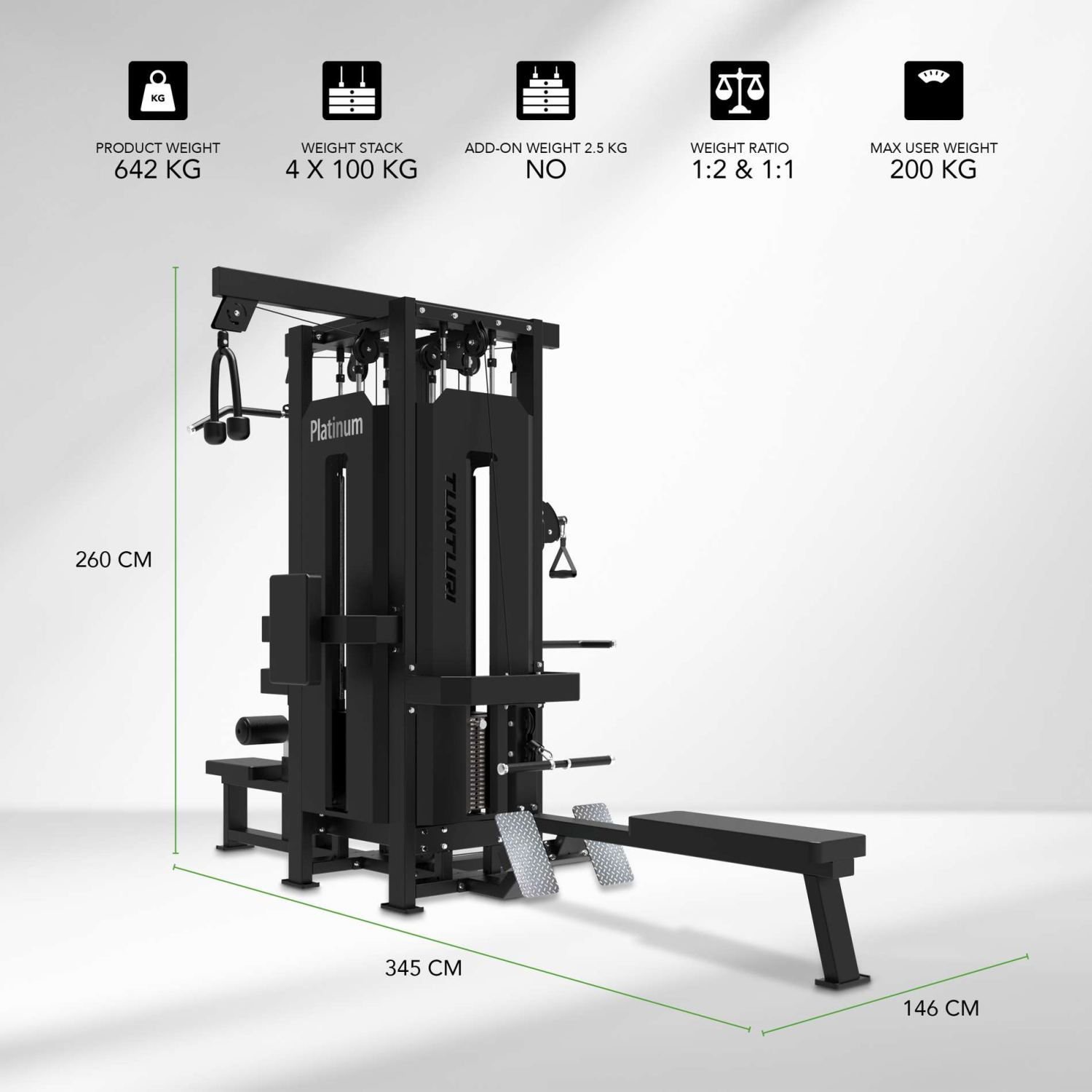 Met de Tunturi Platinum Multi Stations ervaar je een complete full-body workout met één krachtig toestel dat lat pulldowns, seated rows, dips en triceps pushdowns combineert.