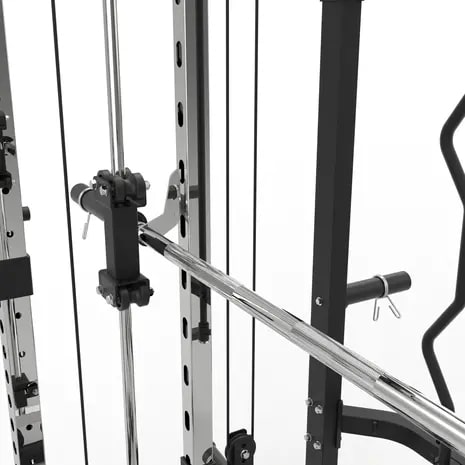 Deze complete combinatie van Smith Machine, Dual Pulley en Power Rack biedt alles wat je nodig hebt voor een full-body workout.